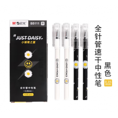 晨光(M&G)小雏菊之夏系列中性笔碳素黑水笔签字笔可爱创意萌笔ins拔盖笔 笔杆随机 拔盖款-0.35mm【AGPB5111】 单支