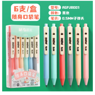 晨光随身口袋笔黑0.5mm便携迷你J8001中性笔随身签字笔少女小清新实用超短款袖珍笔6支盒装可换芯 6支笔套装