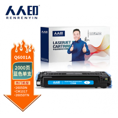 人人印 适用惠普HP1600 2600硒鼓 2605/DN/DTN CM1015 CM1017 彩色粉盒 Q6001A蓝色硒鼓