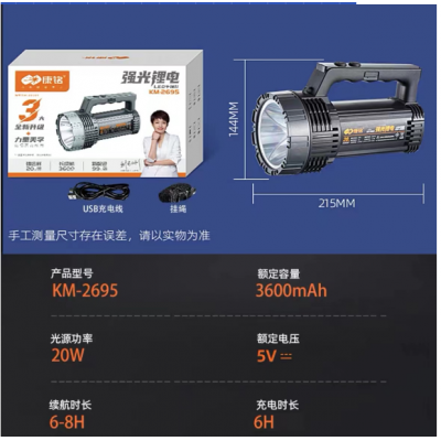 康铭手提灯大功率LED探照灯充电手提灯大手电筒 多功能照明灯 KM-2695