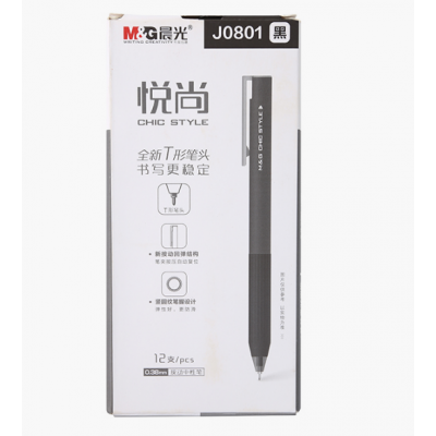 晨光笔 悦尚系列笔 AGPJ0801中性笔 T型笔头签字笔 按动款中性笔 学生水笔 黑色笔芯签字笔 考试专用水笔 0.38mm单支装