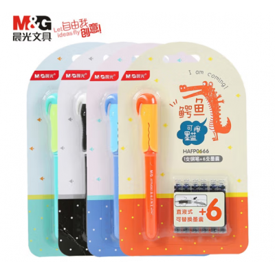 晨光(M&G) 晨光 直液式可换墨囊钢笔组合卡装 钢笔墨水笔套装 笔杆颜色随机 HAFP0666优握1卡装纯蓝色