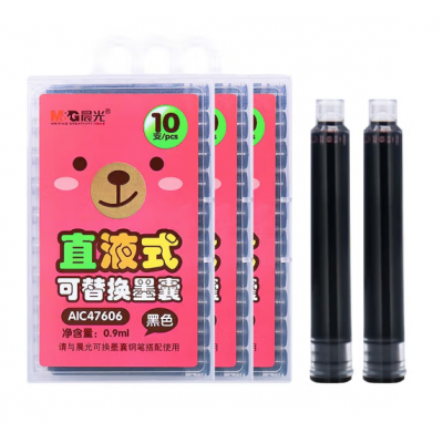 首页 > 办公用品 > 墨水 > 晨光(M&G)文具 可擦黑色墨囊 直液式可替换学生钢笔墨囊墨水3.4mm内径10支装 封面款式随机AIC47606