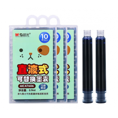 晨光(M&G)文具 可擦墨蓝色墨囊 直液式可替换学生钢笔墨囊墨水3.4mm内径10支装 封面款式随机AIC47606