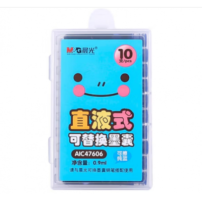 晨光(M&G)文具 可擦纯蓝色墨囊 直液式可替换学生钢笔墨囊墨水3.4mm内径10支装 封面款式随机AIC47606