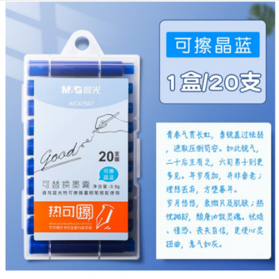 首页 > 办公用品 > 墨水 > 晨光热可擦墨囊钢笔墨囊可替换 可擦墨水墨胆直液式墨蓝刚笔芯通用儿童练字 (AIC47647)