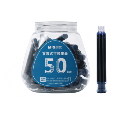 晨光墨囊小学生用钢笔替换芯可擦墨囊3.4mm墨胆儿童练字AIC47623 可擦 墨蓝色 50支/瓶