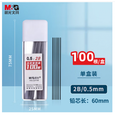 晨光(M&G)文具铅芯 2B铅芯 0.5mm自动铅笔铅芯 树脂铅芯 大容量铅芯 100根/盒 单盒装铅芯 ASLQ3108铅芯 2B铅芯 0.5mm铅芯