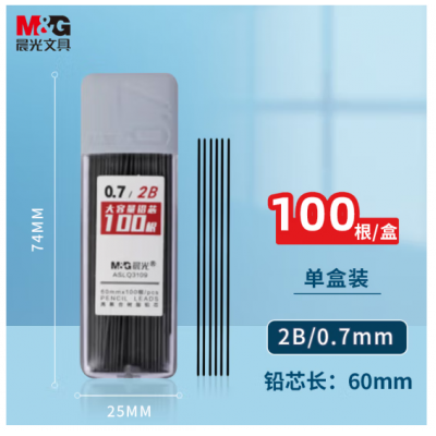晨光(M&G)文具铅芯 2B铅芯 0.7mm铅芯 自动铅笔铅芯 树脂铅芯 考试铅芯 100根/盒 单盒装铅芯 ASLQ3109铅芯 0.7mm铅芯