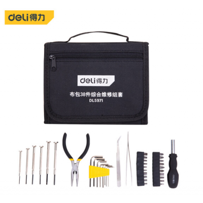 首页 > 建筑建材 > 手动工具 > 得力(deli) 生活多功能便携式工具套装 布包38件综合维修工具包套装 DL5971
