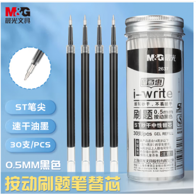 首页 > 办公用品 > 文具 > 晨光(M&G)文具笔芯替芯 0.5mm黑色按动中性笔替芯笔芯 秒干ST头刷题大容量笔芯替芯 i-write考试专用签字水笔替芯笔芯 30支/桶AGR60T66笔芯替芯 0.5mm(黑)