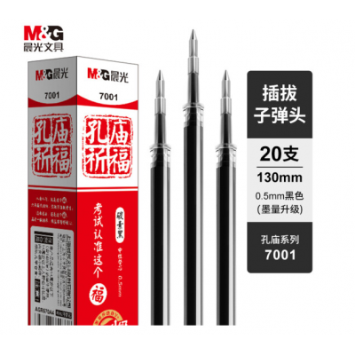 晨光AGR670A4笔芯替芯 陶瓷球珠中性替芯笔芯 孔庙祈福笔芯替芯 7001黑笔芯替芯 0.5 20支/盒装笔芯替芯 0.5mm(黑)