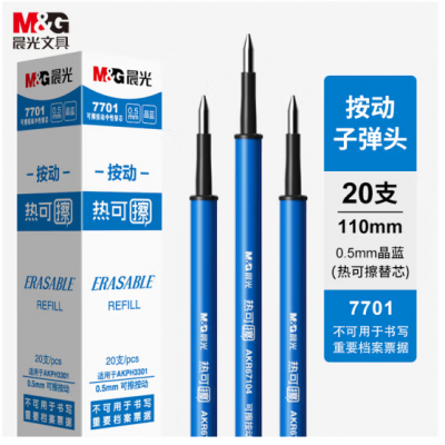 晨光(M&G)文具0.5mm晶蓝色热可擦中性笔芯替芯 按动子弹头笔芯替芯 签字笔替芯笔芯 水笔芯替芯 单支装笔芯替芯 7701 0.5mm(晶蓝)