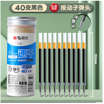 晨光笔芯替芯 学生替芯笔芯 速干笔芯替芯 黑色笔芯替芯 40支装笔芯替芯 2108 0.5mm(黑)