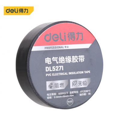 首页 > 建筑建材 > 电工电料 > 得力工具 型号 DL5271 电工胶布pvc阻燃绝缘胶带 防水耐高温加宽强粘黑色大卷 电气绝缘胶带 电工电线胶布 无铅密封线束阻燃耐磨 家用绝缘胶布 专业级电气绝缘胶带(黑) 0.13mm×18mm×10m