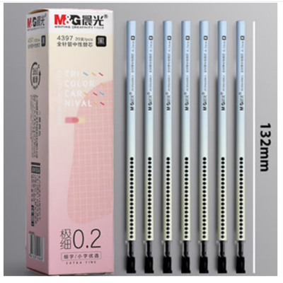 晨光笔芯替芯 三颜两色系列笔芯替芯 中性笔笔芯替芯 黑色笔芯替芯 全针管极细笔芯替芯 单支装4397 0.2mm(黑)