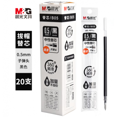 晨光(MG)笔芯替芯 水性笔芯替芯 中性笔芯替芯 水笔芯替芯 极细超细子弹头笔芯替芯 黑色 7052 0.5mm(黑)