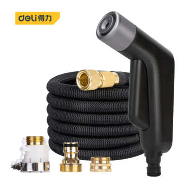 得力(deli)便携多功能家用高压洗车水枪5件套伸缩水管(注水后15米)