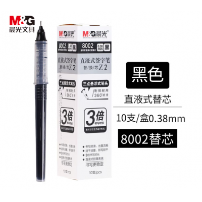 晨光(M&G)文具笔芯黑色0.38mm直液式中性笔替芯笔芯 全针管签字笔芯 直液式水笔替换芯笔芯 单盒装8002/(黑)笔芯