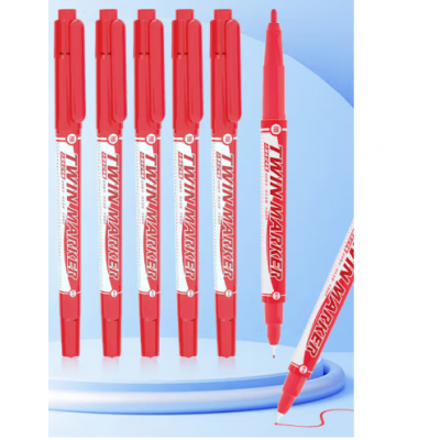 晨光记号笔 红色双头细杆记号笔 重点标记记号笔 12支/盒XPMV7403记号笔 红色单支装(红)
