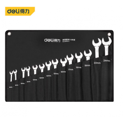 得力(deli) 开口梅花扳手两用扳手套装14件套8-24mm 130014T-95