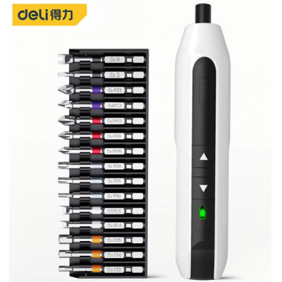 得力(deli) 笔式3.6V无线锂电电动螺丝刀套装充电式起子机电讯电动工具组套白色 H911A
