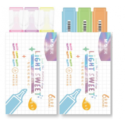 晨光荧光笔记号笔荧光笔单头清甜小方系列荧光笔6支装AHMT6503混色荧光笔