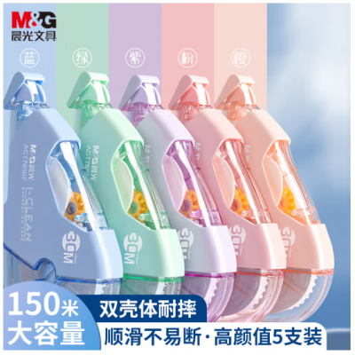 首页 > 办公用品 > 文具 > 晨光(M&G) 修正带学生用修正带超大容量耐摔莫兰迪色系消音修正带 耐摔款 5支装/共150米ACT76502