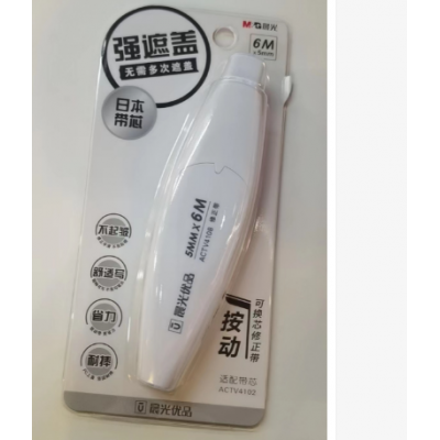 首页 > 办公用品 > 文具 > 晨光修正带 优品按动型可换芯修正带 6M学生用涂改带 省力型修改带 单支装ACTV4108