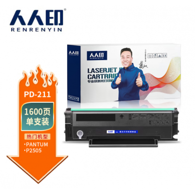 人人印 适用pantum奔图P2505硒鼓PD211易加粉高清碳粉盒P2505保密机墨粉仓涉密打印机墨盒加黑型硒鼓墨粉盒