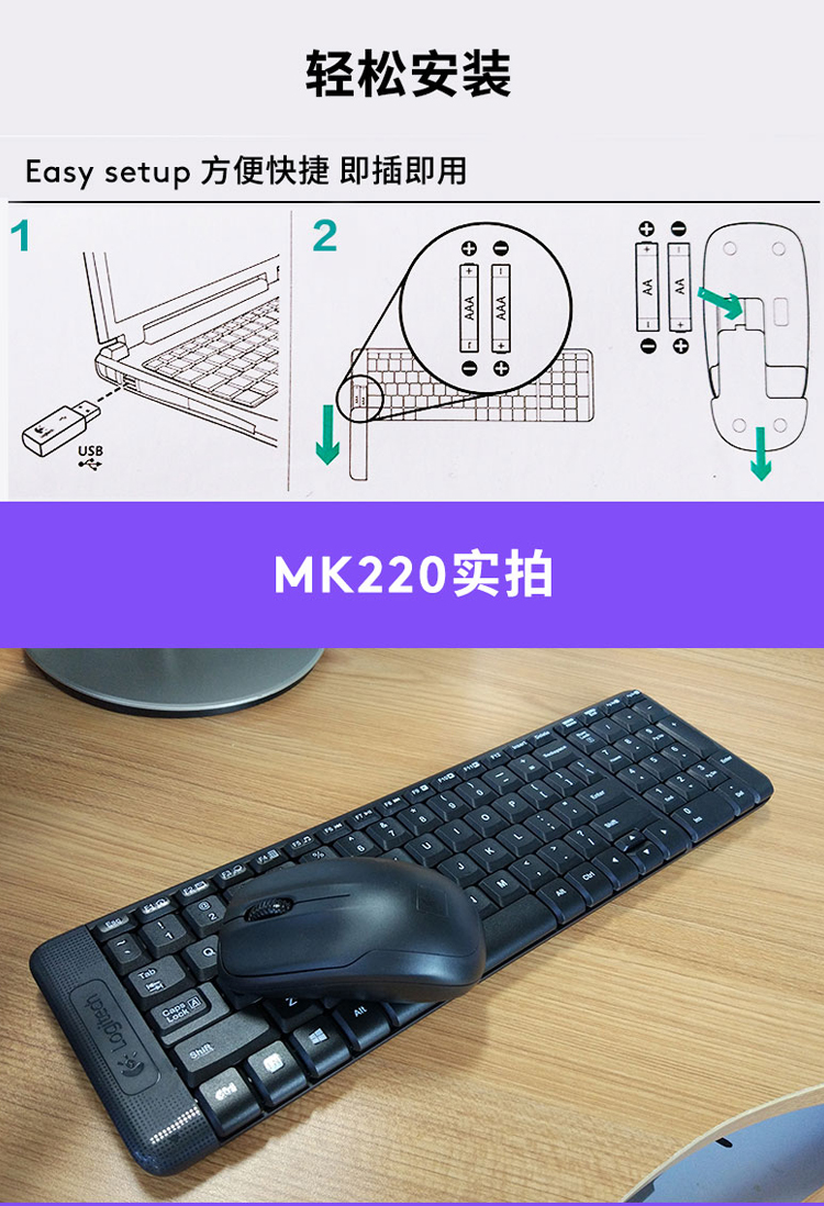罗技(Logitech)MK220 键鼠套装 无线键鼠套装 办公键鼠套装 黑色 带无线2.4G接收器