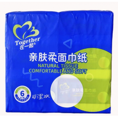 首页 > 办公用品 > 卫生用纸制品 > 在一起亲肤柔面巾纸 抽纸 纸抽 可湿水面巾纸 不含荧光剂纸抽118mm*170mm(5层)420张/包 *6包/提