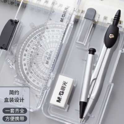晨光(M&G)圆规套装ACS90879 学生考试绘图套装(圆规+橡皮+直尺+三角尺/尺子+量角器)组合装7件套