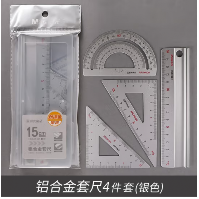 首页 > 办公用品 > 文具 > 晨光(M&G)小学生用铝合金直尺三角尺带波浪线量角器组合儿童多功能套尺四件套日韩绘图画图文具用品 ARL960Q9-凹槽套尺-混色