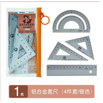 晨光(M&G)铝合金套尺15cm尺中小学生用三角板量角器航海王四件套 【QRL960F6】一套