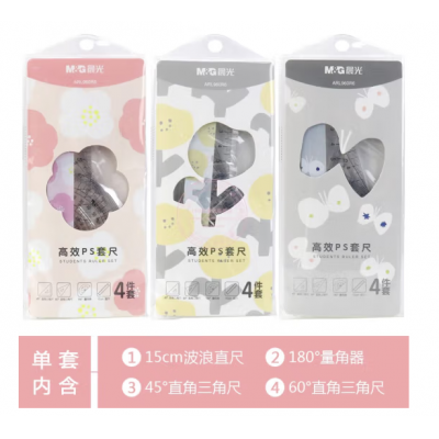 晨光MASMARCU透明套尺15cm学生直尺三角尺量角器测量工具ARL960R6 单套外观随机(960R6)