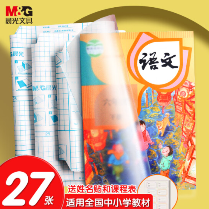 首页 > 办公用品 > 文具 > 晨光(M&G)文具27页多规格透明磨砂自粘包书皮 防水带切角包书膜 学生书套开学文具 带姓名贴课程表AWT944K9