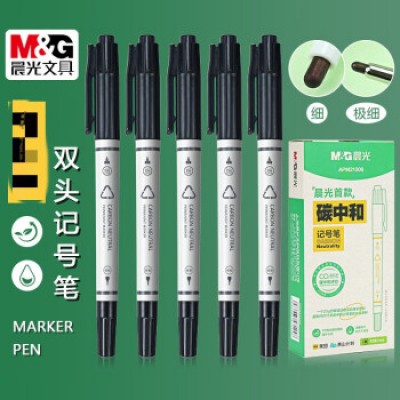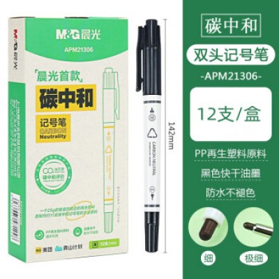 晨光记号笔美术勾线笔 描边笔 绘画涂鸦笔 快递物流笔 标记笔 21306碳中和系列双头记号笔黑色单支装