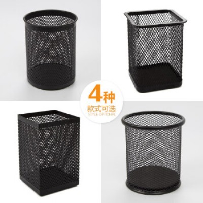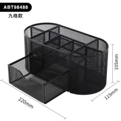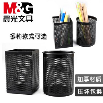 晨光金属笔筒铁丝网圆形方形黑色金属结实耐用网状笔筒多功能笔筒笔架桌面收纳盒简约时尚办公网壮笔盒 ABT98488/九格