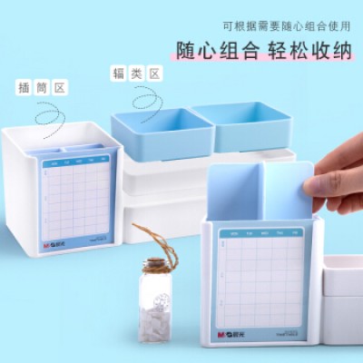 晨光(M&G)ABT98477 多功能组合笔筒 办公用桌面收纳盒创意摆件个性简约大容量收纳筒 多功能组合笔筒 蓝色