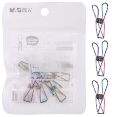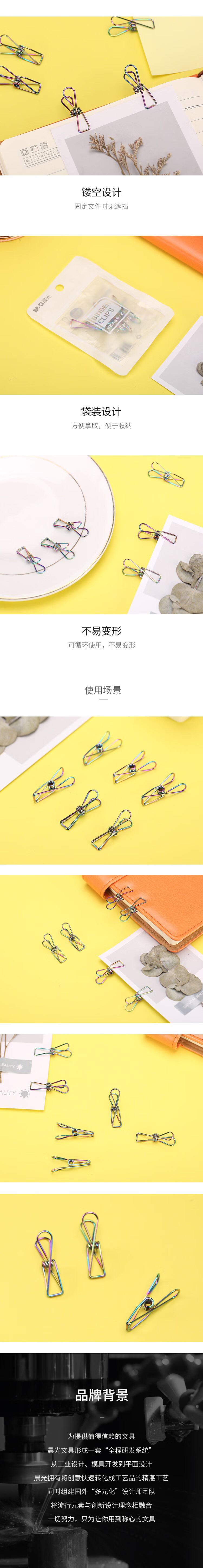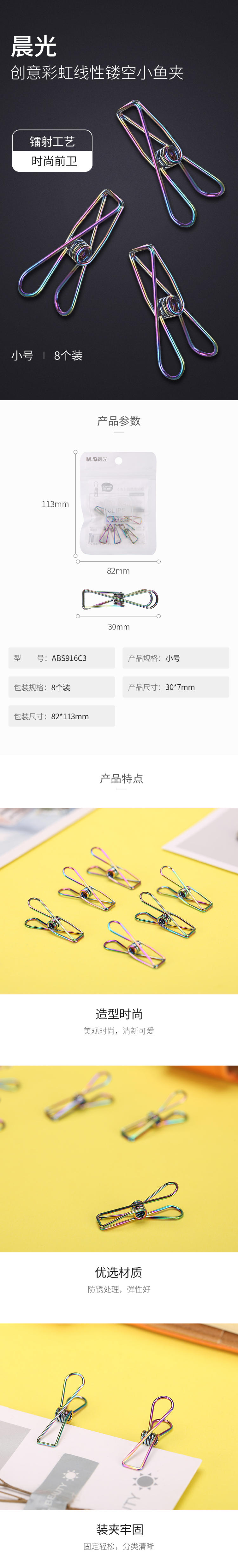 晨光(M&G) 彩虹金属小鱼夹 小号镂空简约票据 办公归类收纳夹手账夹 ABS916C3单包装