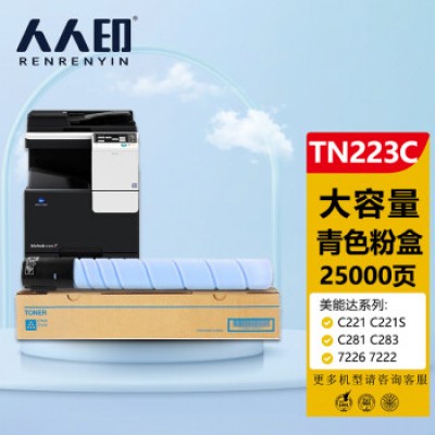 人人印 美能达TN223蓝色墨粉盒 柯尼卡美能达TN224 C256 C266 C7222 C7226墨盒 柯美C226碳粉 (大容量)