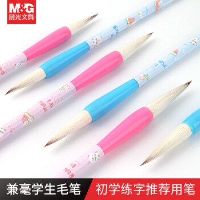 晨光学生毛笔兼毫笔书法中楷小学生练习书法写字用品学生练字签名卡通彩色杆练习毛笔 AWBY2711中楷一支
