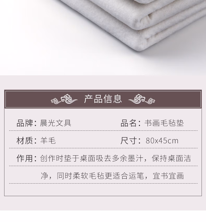 首页 > 办公用品 > 文具 > 晨光(M&G)文房四宝系列加厚包边书法书画毛毡垫文具 AWBW8109(中号)80X45CM1个