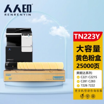 人人印 美能达TN223黄色墨粉盒 柯尼卡美能达TN224 C256 C266 C7222 C7226墨盒 柯美C226碳粉 (大容量)