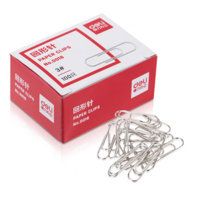 得力(deli)回形针办公用品曲别针回行型针装订文具镀镍加厚100枚/盒 小号回形针0018