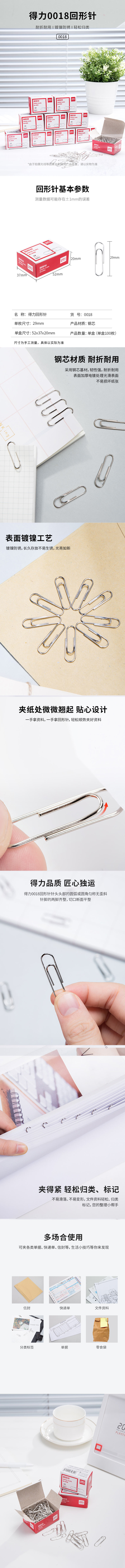 首页 > 办公用品 > 文具 > 得力(deli)回形针办公用品曲别针回行型针装订文具镀镍加厚100枚/盒 小号回形针0018