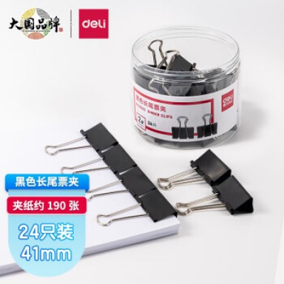 得力(deli) 长尾夹凤尾夹文具办公资料铁夹黑色金属燕尾夹大号文件夹小号票据试卷夹鱼尾夹不锈钢 8562黑色大号(41mm/24只)