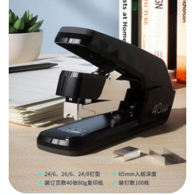首页 > 办公用品 > 文具 > 得力(deli)省力型订书机 办公桌面订书器 【适配24/6,26/6及24/8订书钉】订书器 黑色0371订书器