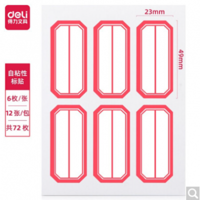 得力(deli)口取纸7187 72枚23×49mm标签贴 标签纸自粘性标签贴纸 不干胶标签贴纸便签贴 口曲纸口取纸
